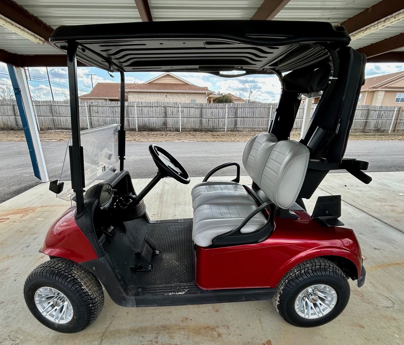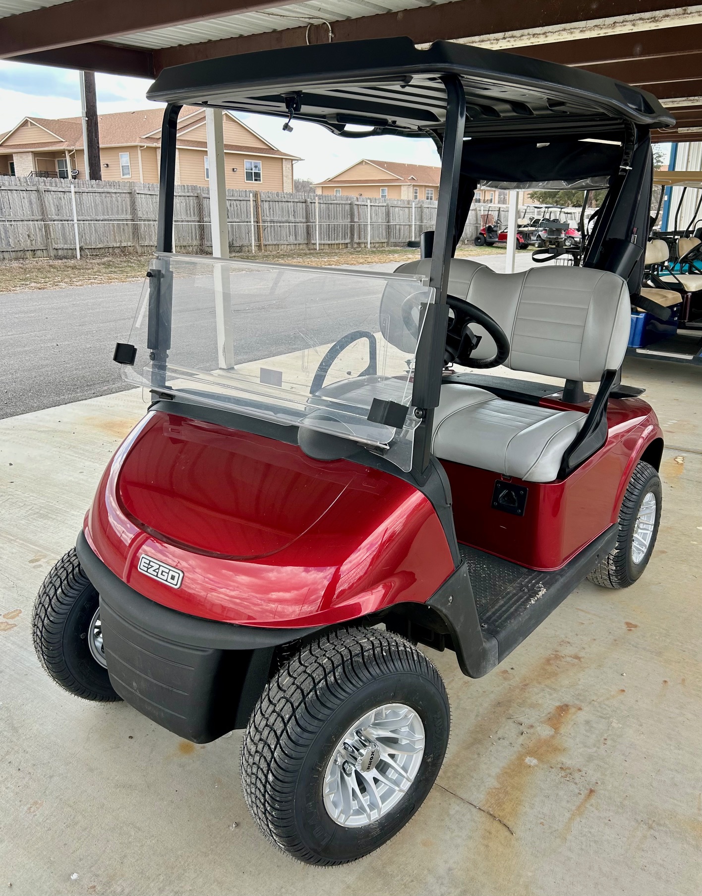 Fold-down Windshield, Premium Seats, Front Cup Holders, golf bag holder, Ball Washer, Premium Wheels 10"
